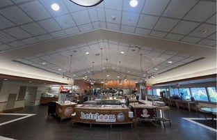 The dining room is home to RFoC or Real Food on Campus. Guests can enjoy all-you-care-to-enjoy dining in a fun, relaxed atmosphere. This location offers assorted American entrées, ethnically inspired foods, vegetarian selections and more. The grill flame broils your fresh selections while our Mediterranean station fires up pizza and pasta in front of your eyes. Our Produce Market is more than just a salad bar, it is a complete meal solution with a daily selection of vegetarian offerings. Whatever your tastes, our RFoC dining has something for everyone!